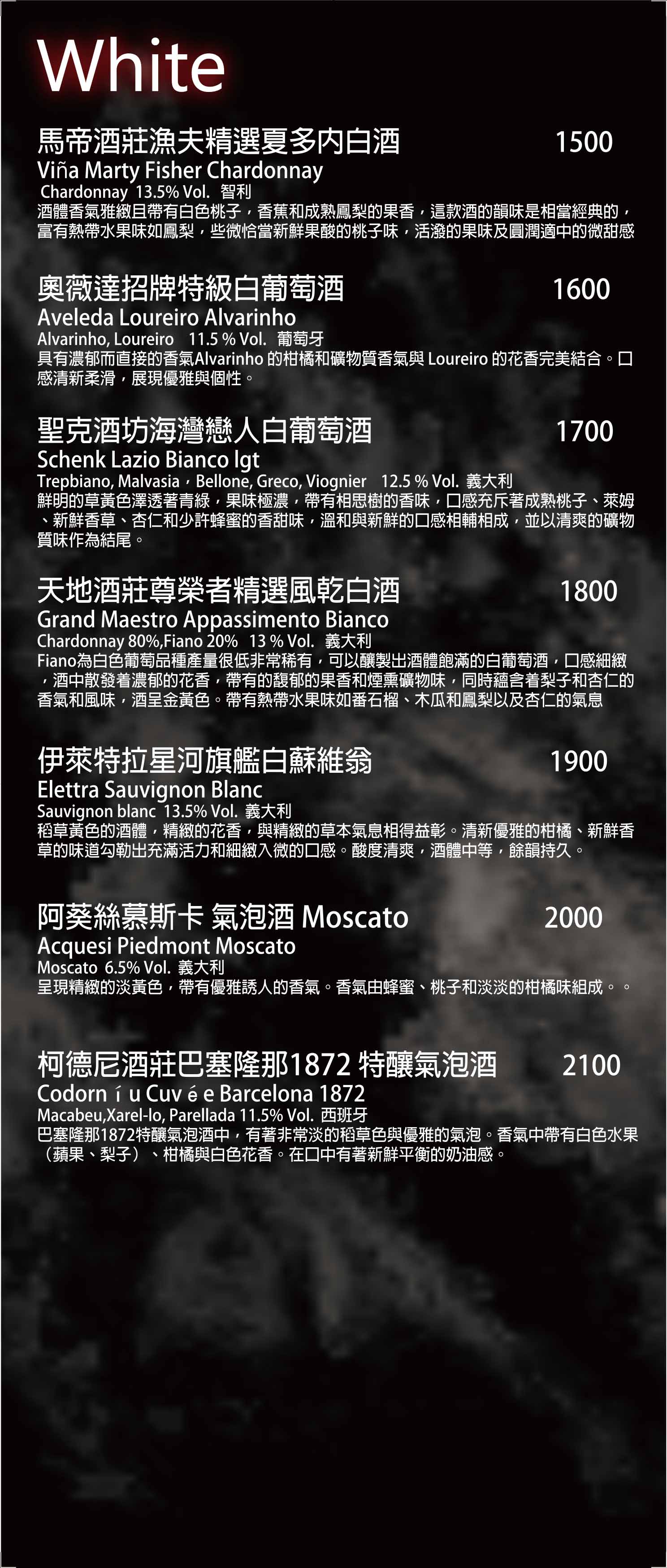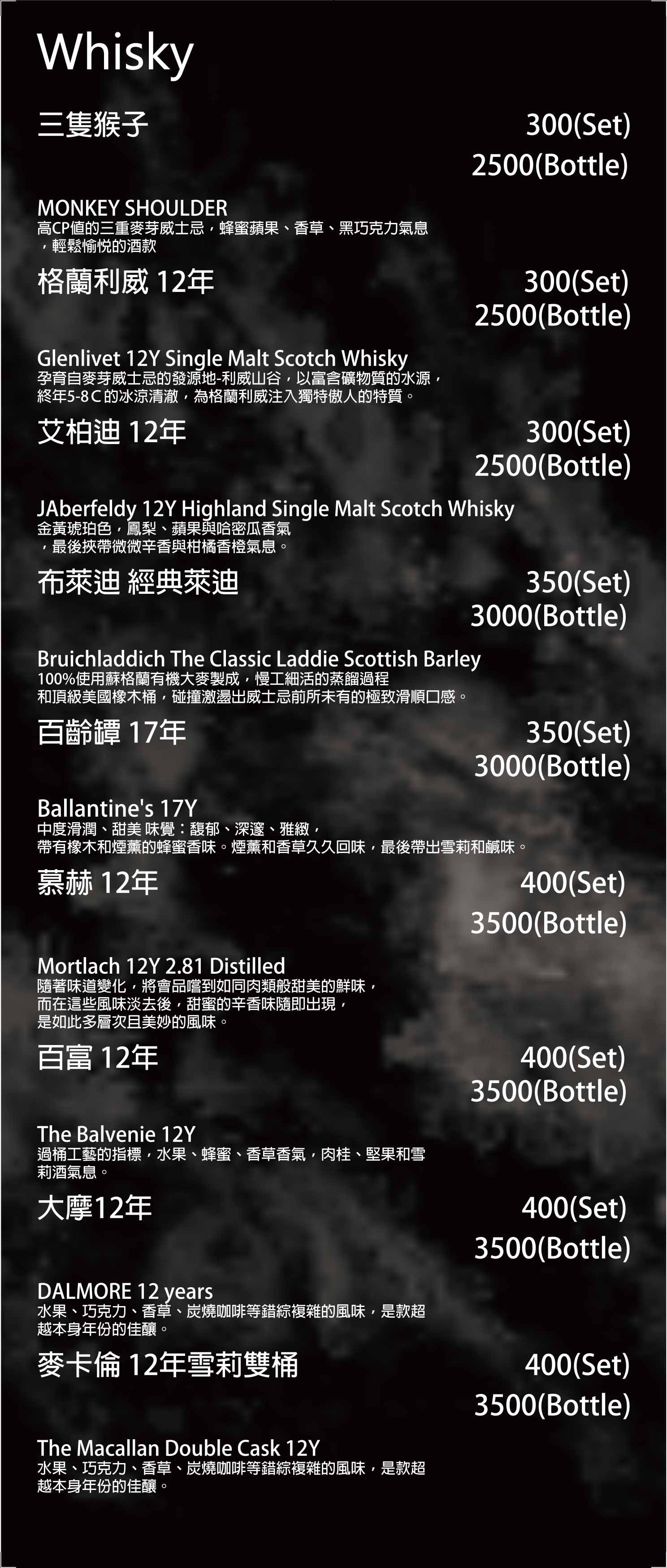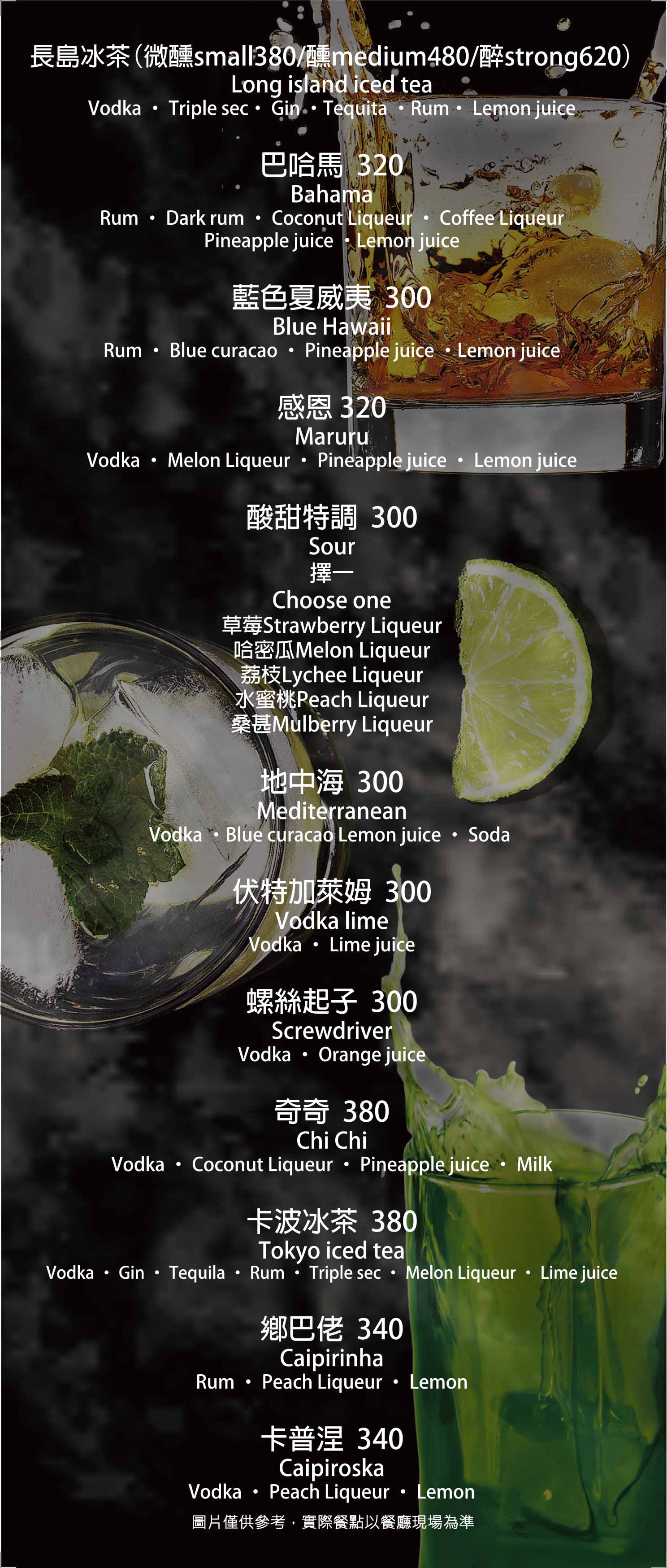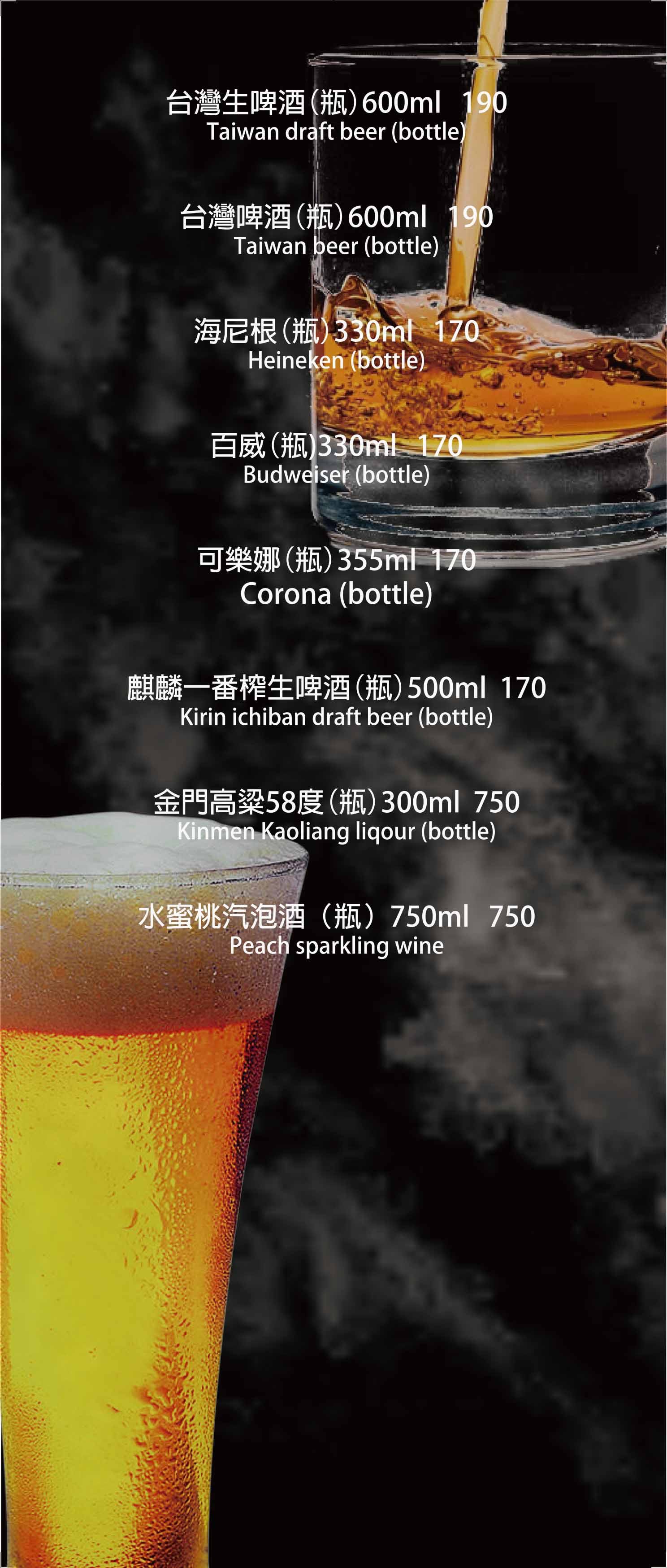 酒水菜單